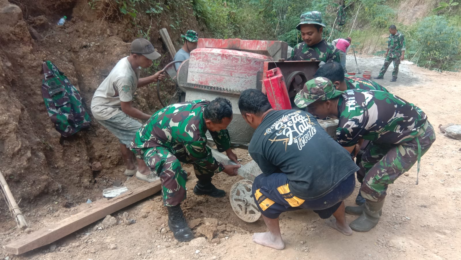 SULUHNEWS.ID, PACITAN – Demi mengejar target yang telah ditentukan pada pelaksanaan Pra TMMD Ke-117, anggota Kodim 0801/Pacitan dengan penuh semangat gotong royong menyiapkan molen untuk melanjutkan pengecoran jalan sepanjang kurang lebih 2 km, yang terletak di Dusun Gedangan, Desa Ketroharjo, Kec. Tulakan, Kab. Pacitan, Jumat (02/06/2023).