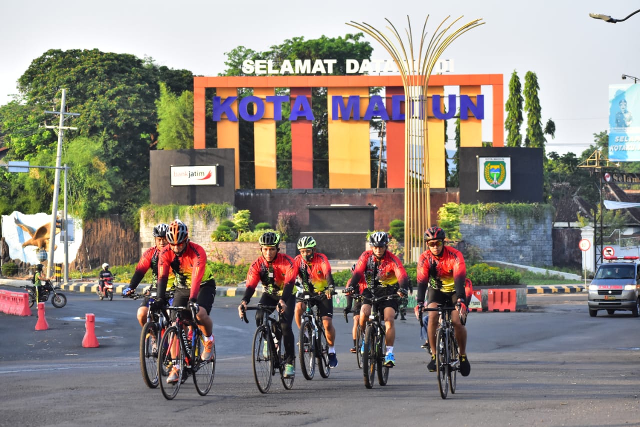 Seperti pada pagi ini, saat mereka melakukan gowes bareng dengan berkeliling ke berbagai pelosok Kota/Kab. Madiun yang menempuh jarak hampir 50 Km.