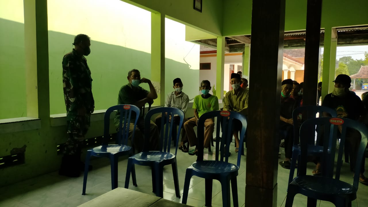 Di Balai Desa tersebut, Serma Andri Muhibuddin mengajak dan menghimbau warga untuk selalu memakai masker yang benar sesuai protokol kesehatan covid-19, sering cuci tangan dan selalu jaga jarak. Hal tersebut dia lakukan agar warga di wilayah binaannya terhindar dan bebas dari penyebaran virus corona. (Dusman)