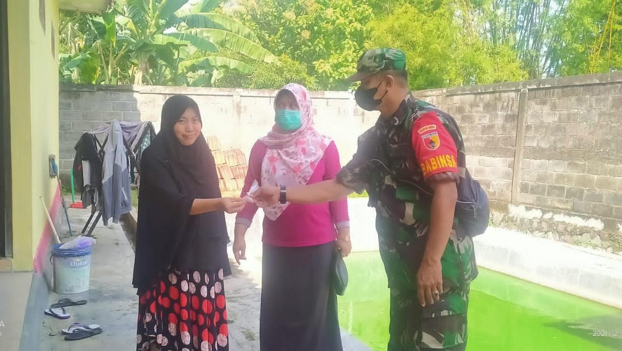 SULUHNEWS.ID, MADIUN.- Memasuki musim hujan, Babinsa Koramil Tipe B 0803-13/Kebonsari bersama Tim kesehatan dari Puskesmas secara door to door membagikan obat abate kepada masyarakat Desa Sukorejo, Kecamatan Kebonsari, Kabupaten Madiun, Minggu (2/1/2022).