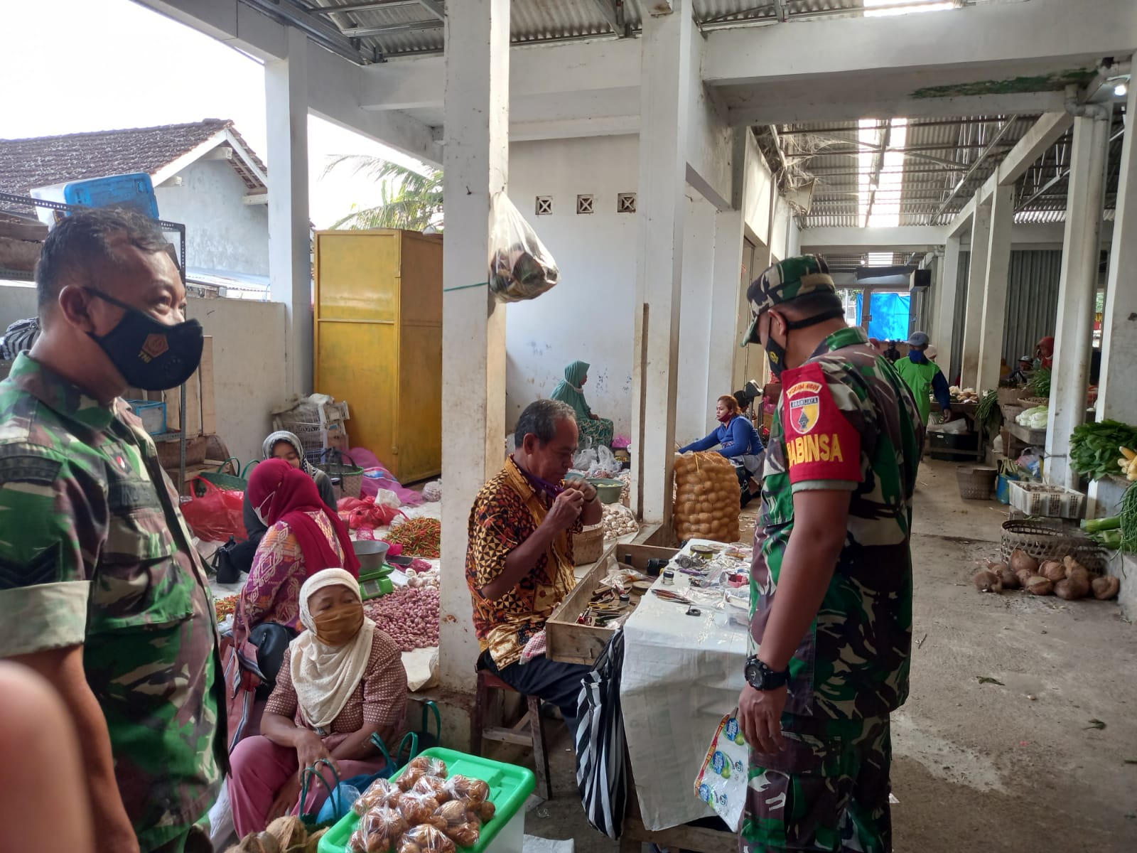Anggota Koramil 0801/03 Arjosari aktif memberikan himbauan Protokol kesehatan kepada pengunjung (pedagang dan pembeli) pasar Arjosari dan meminta warga tetap waspada ditengah pandemi covid 19 dengan disiplin melaksnakan 5M.