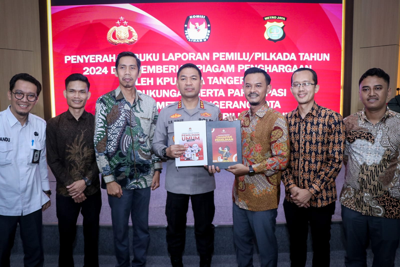 Dalam kesempatan tersebut, Kapolres Metro Tangerang Kota, Kombes Pol Dr. Raden Muhammad Jauhari, S.H., S.I.K., M.Si., menerima langsung laporan serta piagam penghargaan yang diserahkan oleh Ketua KPU Kota Tangerang, Qori Ayatullah, disaksikan oleh sekitar 50 tamu undangan.