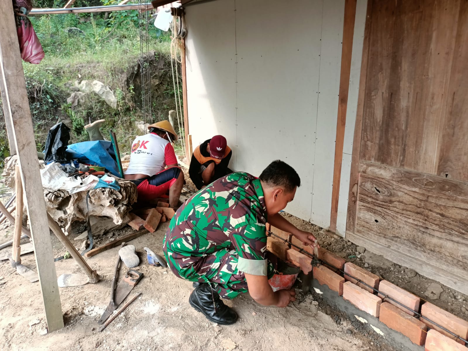 SULUHNEWS.ID, NGAWI – Untuk mengatasi kesulitan warga di wilayah binaannya, anggota Koramil Bringin Kodim 0805/Ngawi Sertu Kholiq membantu warga yang sedang merehap rumah bertempat di Desa Kenongorejo Kecamatan Bringin, Minggu (08/01/2023).