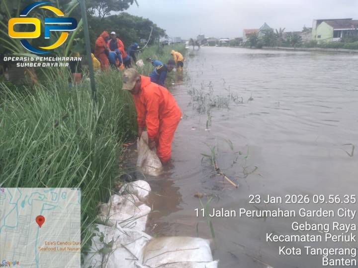 Berdasarkan hasil pemantauan terkini, tercatat terdapat satu lokasi tanggul yang mengalami jebol, tepatnya di kawasan Garden City Periuk, dan telah ditangani langsung oleh petugas di lapangan.