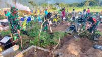 Bersama Seluruh Komponen Masyarakat, Koramil 0801/Pacitan Bersinergi Bersihkan Makam Umum