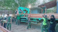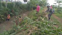 Sertu Suparno Bersama Warga kerja Bakti Bersihkan Bekas Penebangan Pohon