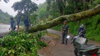 Anggota Kodim 0802/Ponorogo Amankan Pohon Tumbang Yang Menutup Akses Jalan Wisata Ngebel