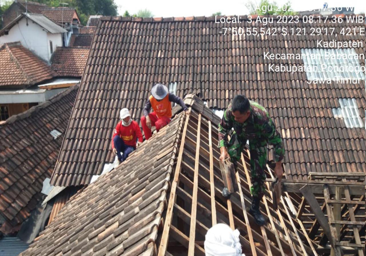 SULUHNEWS.ID, PONOROGO – Berbaur bersama warga Kelurahan Kadipaten, Desa/Kecamatan Babadan, Kabupaten Ponorogo, hari ini Serka Sentot anggota Koramil Tipe B 0802/03 Babadan, Kodim 0802/Ponorogo, Babinsa Kelurahan Kadipaten melaksanakan perehaban rumah milik Bapak Muhammad Ahsim, Kamis (03/08/2023).