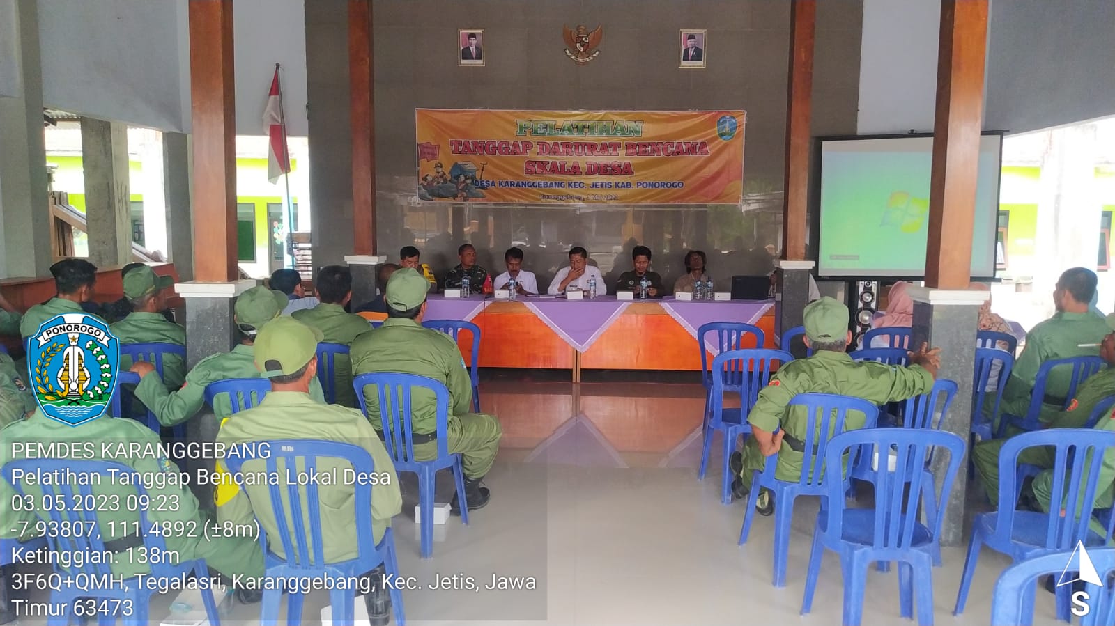 SULUHNEWS.ID, PONOROGO – Serka Agus Sariyanto, anggota Koramil Tipe B 0802/16 Jetis, Babinsa Karanggebang kemarin (Rabu, 03-05-2023) mengikuti kegiatan Pelatihan Tanggap Darurat Bencaca Skala Desa bertempat di Balai Desa Karanggebang, Kecamatan Jetis, Kabupaten Ponorogo, Kamis (04/05/2023).