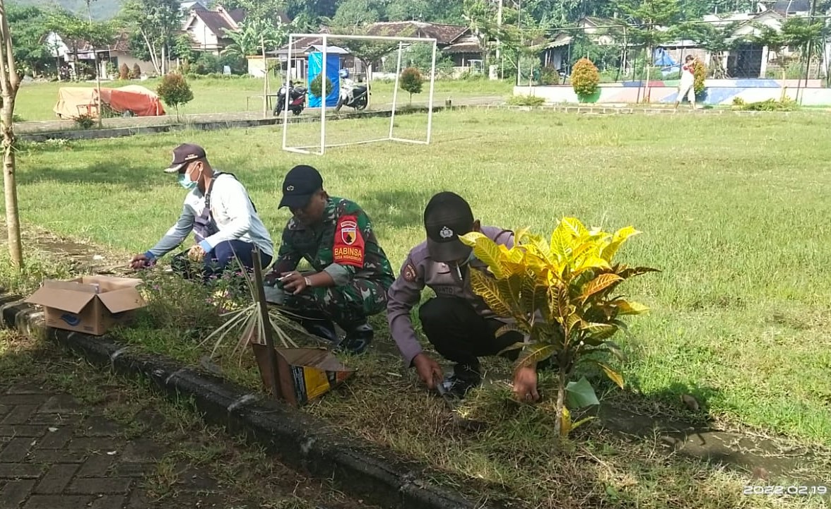 SULUHNEWS.ID, TRENGGALEK – Babinsa Koramil 0806/02 Pogalan Serda Tamrin bersama Pilar Desa dibantu warga melaksanakan kegiatan kerja bakti membersihkan rumput liar yang tumbuh di sepanjang jalan taman Desa Ngadirejo, Kecamatan Pogalan, Trenggalek, Sabtu (19/2/2022)