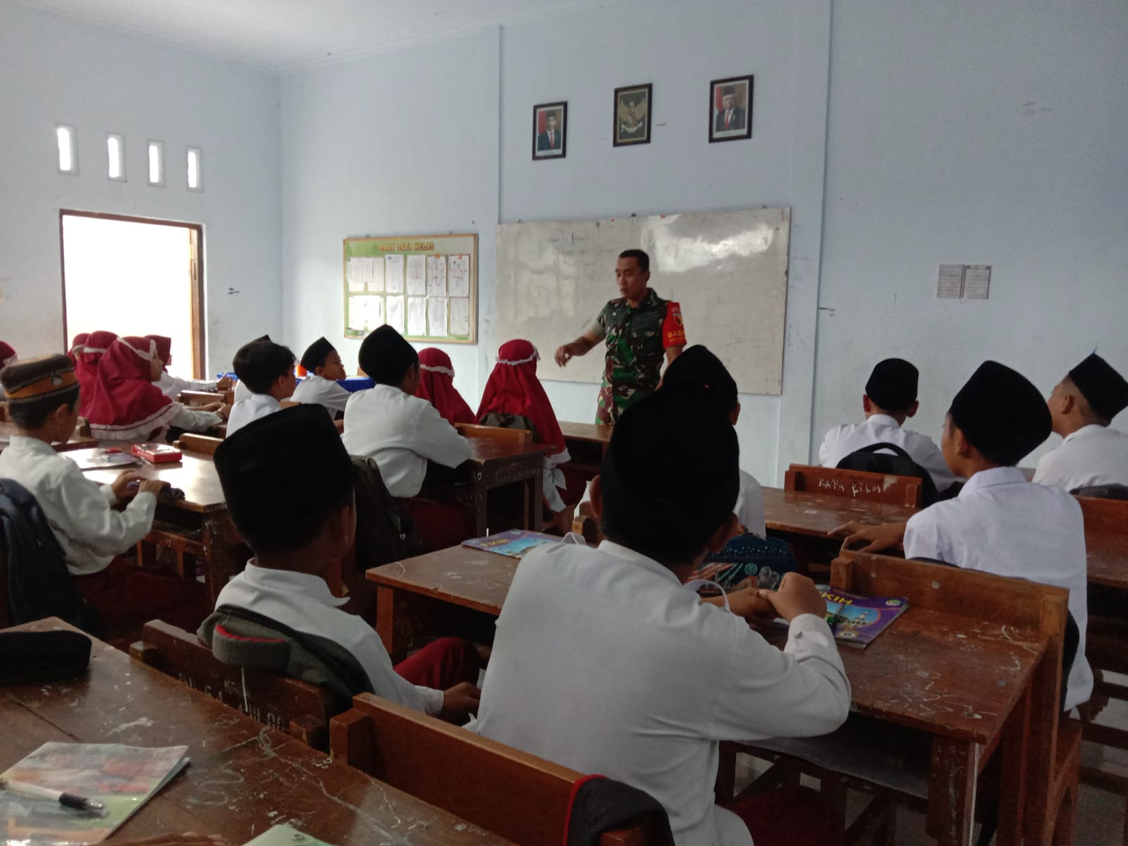 Para pelajar MI Nuruzh Zholam terlihat begitu semangat dan serius dalam menerima penjelasan materi wawasan kebangsaan yang diajarkan oleh Sertu Suwito.