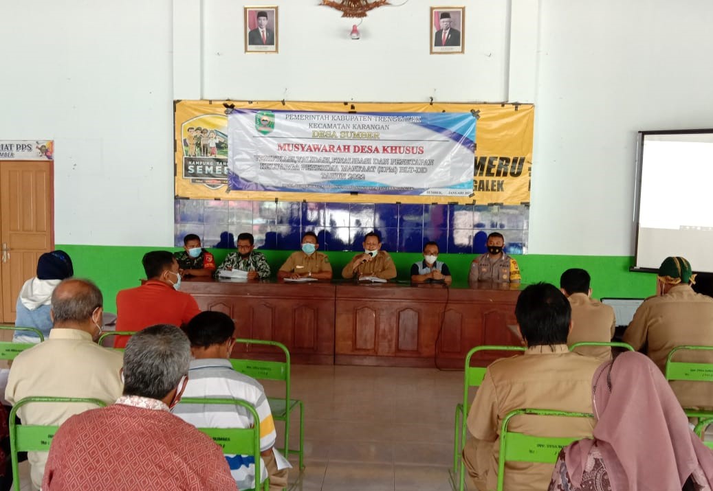 SULUHNEWS.ID, TRENGGALEK – Babinsa Sumber Koptu Dwi Darmoko Koramil 0806/08 Karangan menghadiri kegiatan musyawarah desa dalam rangka validasi dan penetapan calon Keluarga Penerima Manfaat Bantuan Langsung Tunai dari Dana Desa (KPM BLT DD ) tahun 2022. Kegiatan dilaksanakan di Aula Pertemuan Desa Sumber, Kecamatan Karangan, Trenggalek, Senin (21/2/2022).