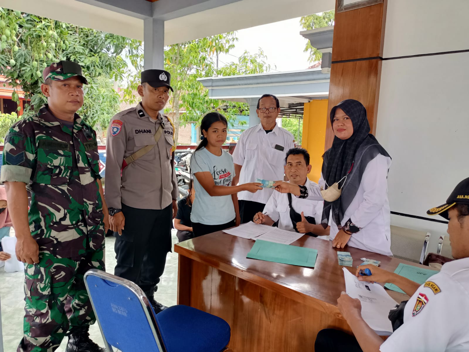 SULUHNEWS.ID, NGAWI – Anggota Koramil 14/Bringin Kodim 0805/Ngawi Serka Andik bersama Babinkamtibmas melaksanakan pendampingan pemberian BLT BBM yang di laksanakan di Kantor Desa Dero Kecamatan Bringin, Rabu (19/10/2022).