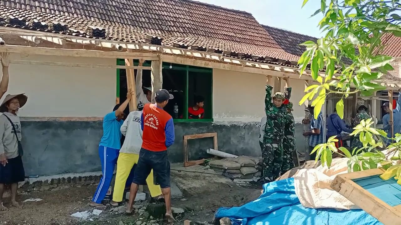 SULUHNEWS.ID, NGAWI – Sebagai wujud kepedulian TNI dalam meringankan dan mengatasi kesulitan rakyat di sekelilingnya, Anggota Koramil 0805/12 Mantingan, Kodim 0805/Ngawi membantu dan bergotong royong memperbaiki rumah milik warga An. Karsono yang tinggal di Dsn. Ngelo RT. 002/001 Desa Jatimulyo Kecamatan Mantingan,Sabtu (04/02/2023).