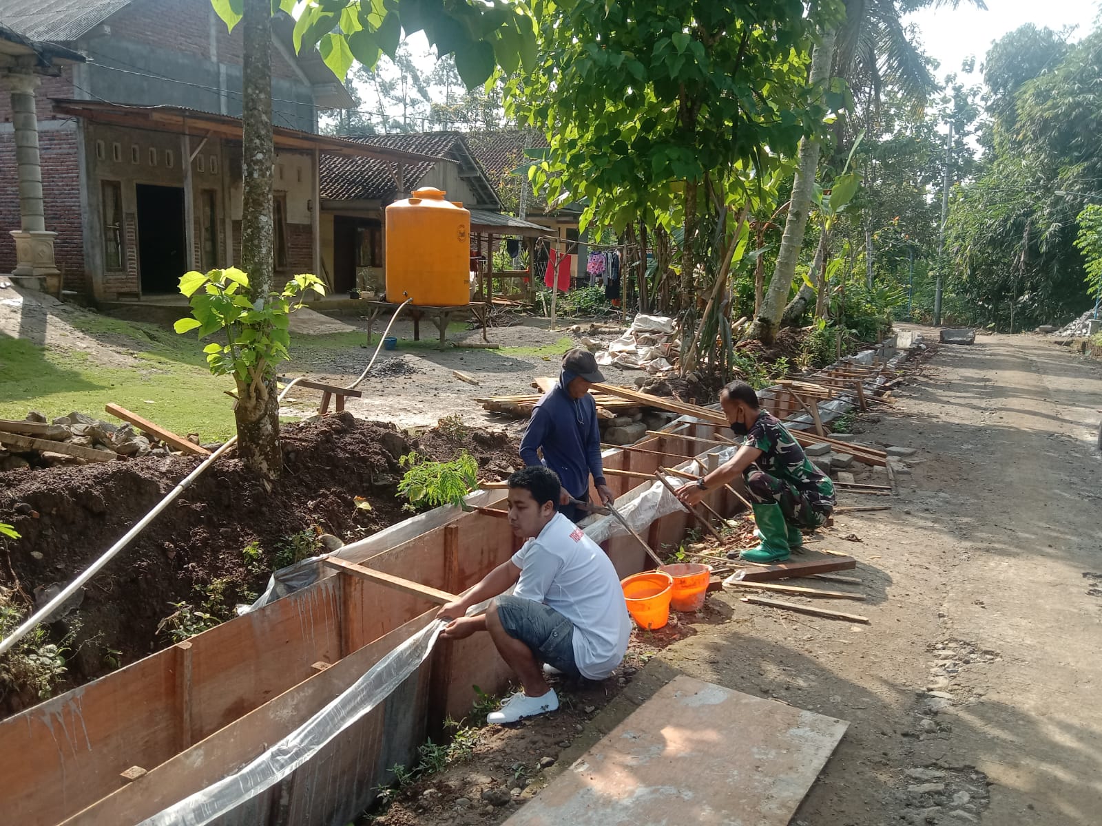 SULUHNEWS.ID Trenggalek – Babinsa Siki Serka Dirwono Koramil 0806/13 Dongko jajaran Kodim 0806/Trenggalek bersama warga melaksanakan kegiatan karya bakti pembuatan saluran irigasi di Dukuh Kojan, Desa Siki, Kecamatan Dongko, Kabupaten Trenggalek, Sabtu (25/02/2023).