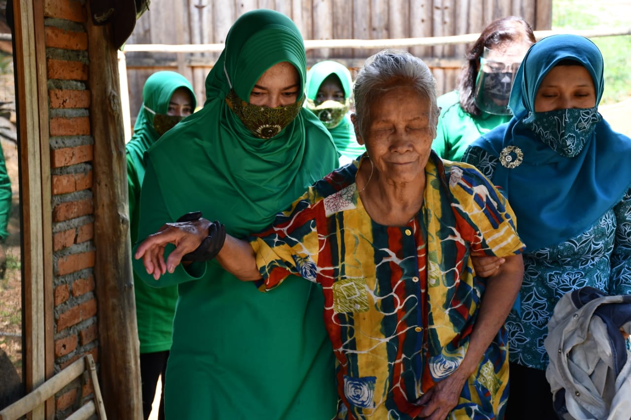 Dalam aksi sosialnya itu, para manula atau janda kurang mampu yang terdapat di Desa tersebut didatanginya untuk selanjutnya diberikan bantuan berupa paket Sembako dan masker.