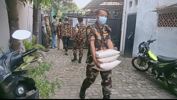 Sebanyak 250 paket yang berupa beras 5 kg dan 1 kg daging Sapi per paketnya ini di berikan pada warga secara langsung oleh anggota Banser guna mematuhi PPKM darurat agar tidak terjadi kerumunan.