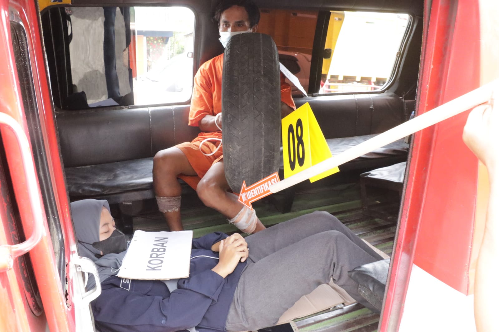 SULUHNEWS.ID, TANGERANG – Satreskrim Polresta Tangerang Polda Banten menggelar rekonstruksi kasus pemerkosaan dan percobaan pembunuhan terhadap seorang karyawati yang melibatkan sopir dan kernet berinisial IS (22) dan GG (24). Rekonstruksi digelar di tempat kejadian perkara, Jumat (4/2/2022).