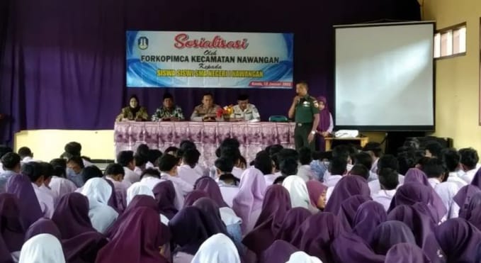 SULUHNEWS.ID, PACITAN – Dalam upaya membentuk karakter generasi muda penerus bangsa, Letda Arh Gino Komandan Koramil 0801/05 Nawangan Kodim 0801/Pacitan bersama jajaran Forkopimca, melakukan sosialisasi dan pembekalan kepada para siswa di SMAN 1 Nawangan, Kab. Pacitan Jumat (13/01/2023).