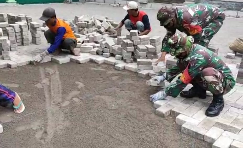 Dengan semangat dan jiwa kekeluargaan, Anggota Koramil Paron bersama warga sangat bersemangat melaksanakan kegiatan gotong royong pemasangan paving di halaman Masjid Al Amin ini.