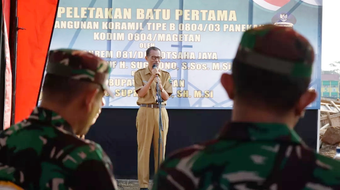 “Pak Danrem perlu saya sampaikan, terima kasih kepada jajaran TNI-Polri. Tahun kemarin, baru kali ini, Magetan mendapatkan penghargaan tertinggi kabupaten yang zero konflik,” kata Suprawoto dalam sambutannya pada acara peletakkan batu pertama pembangunan kantor Koramil 0804/03 Panekan di Desa Panekan, Kecamatan Panekan, Kabupaten Magetan, Selasa (27/6/2023).