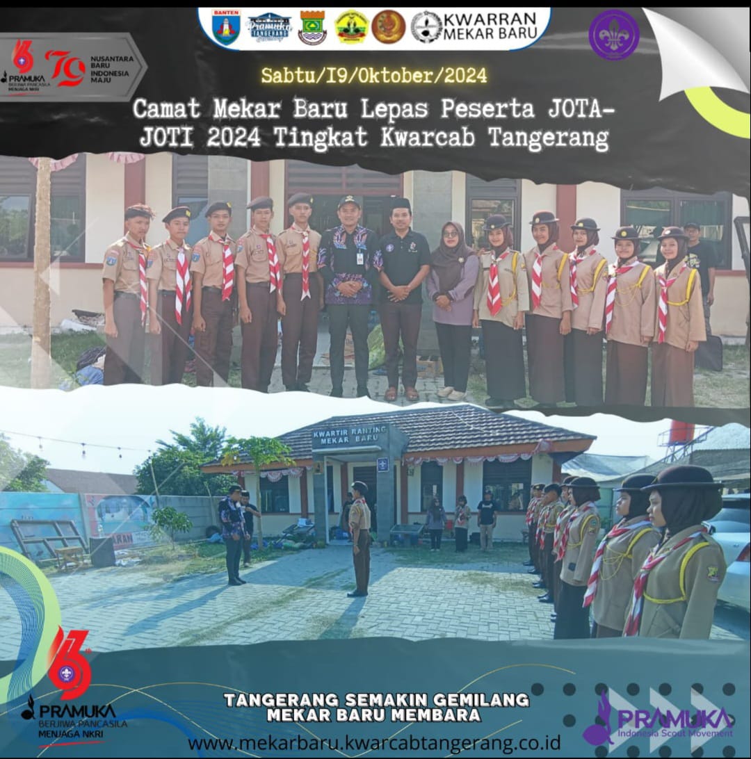 SULUHNEWS.ID, KAB TANGERANG – Camat Mekar Baru, Aan Ansori, selaku Mabiran Gerakan Pramuka Kwarran Mekar Baru melepas secara langsung perwakilan peserta Jota Joti Pramuka ke Kwarcab Kabupaten Tangerang di halaman Kecamatan Mekar Baru, Sabtu (19/10/24).