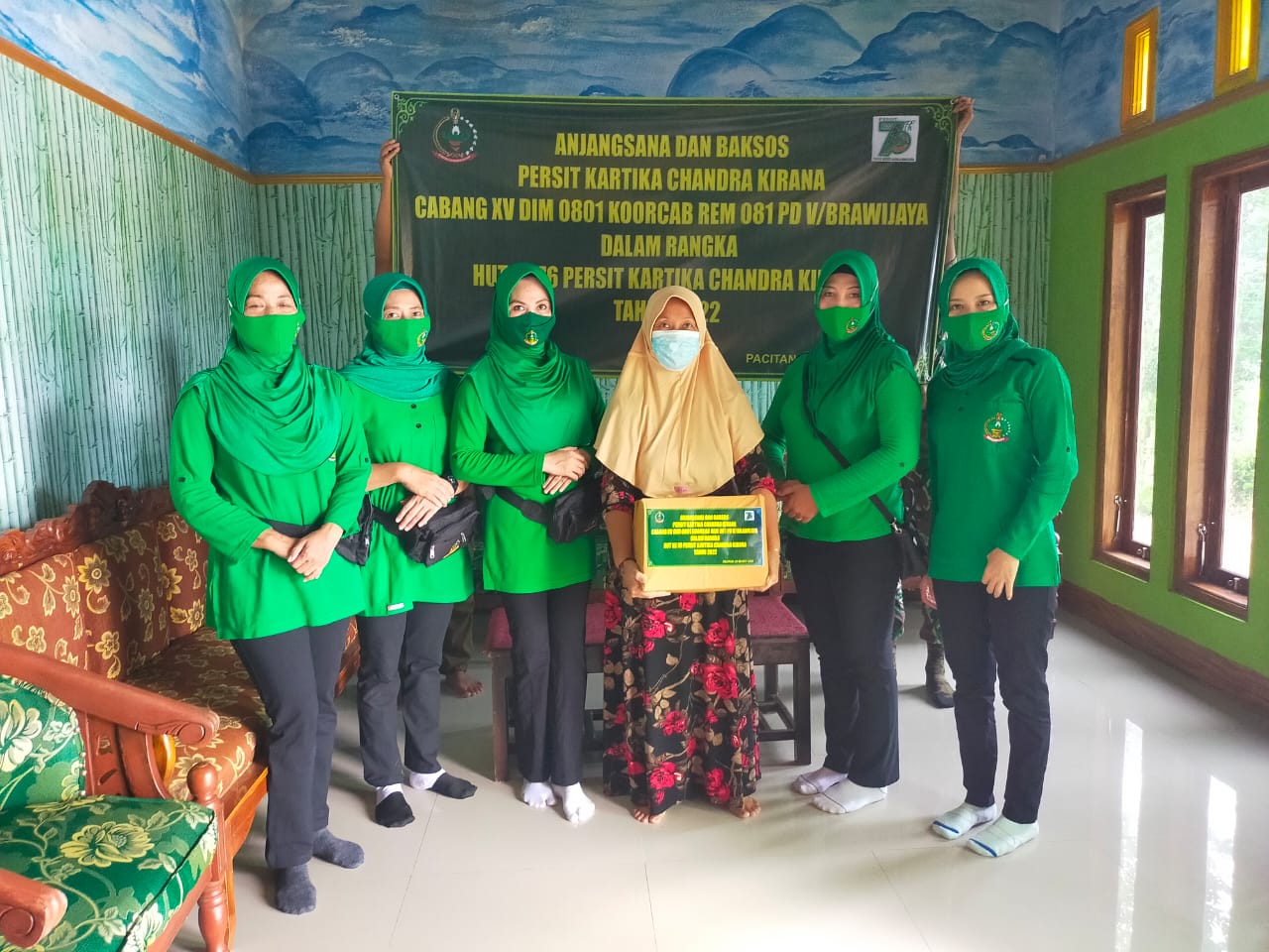 SULUHNEWS.ID, PACITAN – Dalam Rangka HUT Ke-76 Persit Kartika Chandra Kirana Tahun 2022 kali ini, Ketua Persit Kartika Chandra Kirana Cab XV Dim 0801 Koorcab Rem 081 PD V Brawijaya Ny. Mery Ibnu Khazim bersama pengurus dan anggota persit melaksanakan Anjangsana dan Bhakti Sosial.