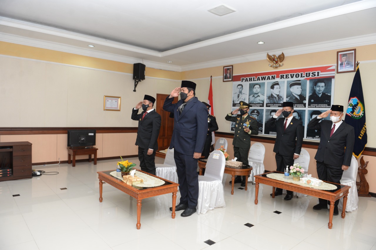 Guna memperingati hari yang bersejarah yang tepat jatuh pada hari ini, Dandim 0801 Pacitan Letkol Kav Ibnu Khazim S.I.P., M.Si bersama dengan unsur Forkopimda Pacitan mengikuti upacara peringatan Hari Kesaktian Pancasila Tahun 2021 melalui virtual di Ruang Rapat Bupati Pacitan Jl. Jaksa Agung Suprapto No.08 Pacitan.
