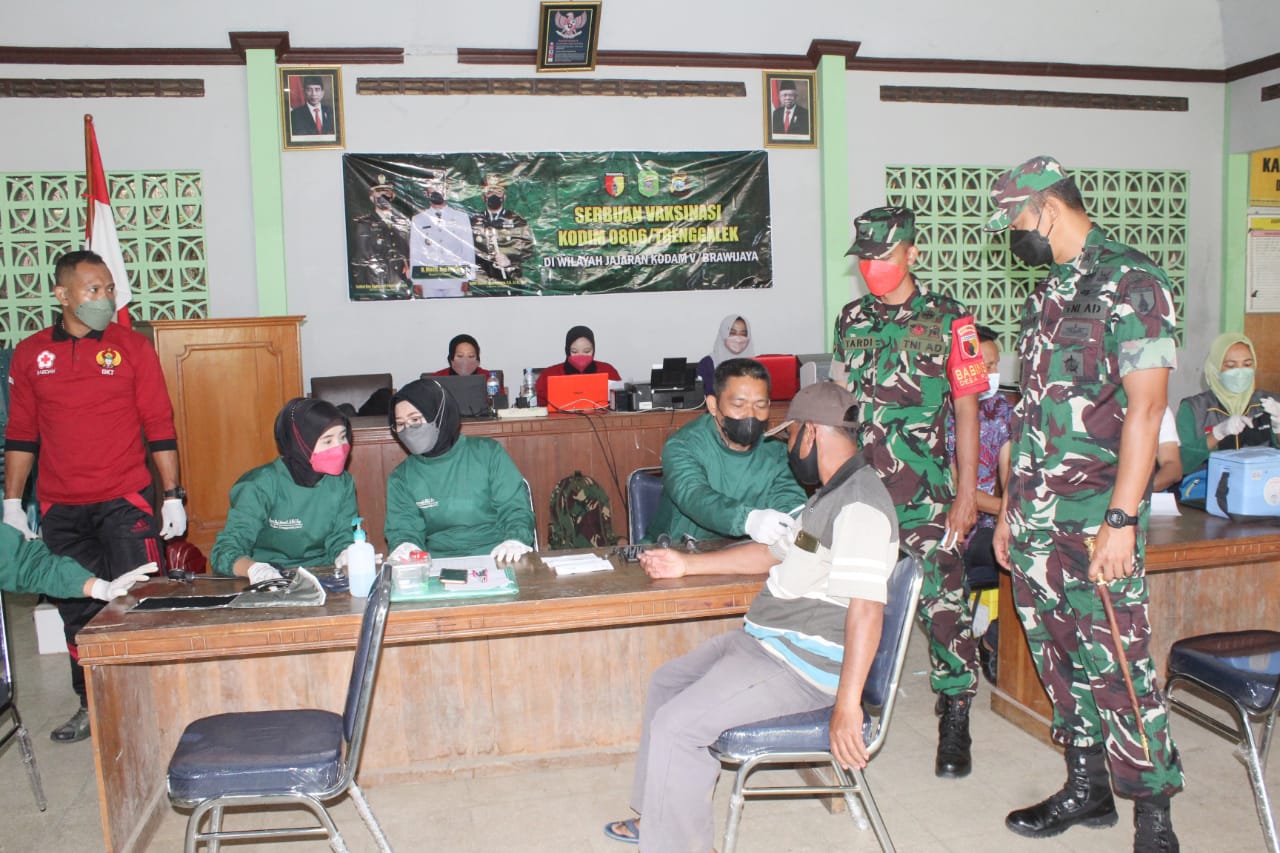 “Dalam pelaksanaan serbuan vaksinasi ini, Kodim Trenggalek bekerja sama dengan Dinas Kesehatan Kabupaten Trenggalek dan DKT Trenggalek sebagai vaksinator,” terangnya.