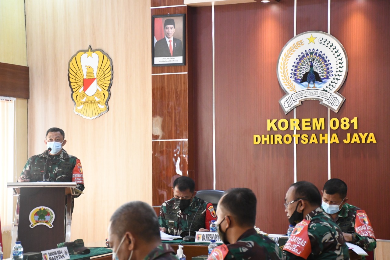 Guna mencegah terjdinya penyebaran Covid-19 di lokasi TMMD, Danrem ingin agar fasilitas Prokes dapat disiapkan dikoordinasikan dengan Dinkes setempat.