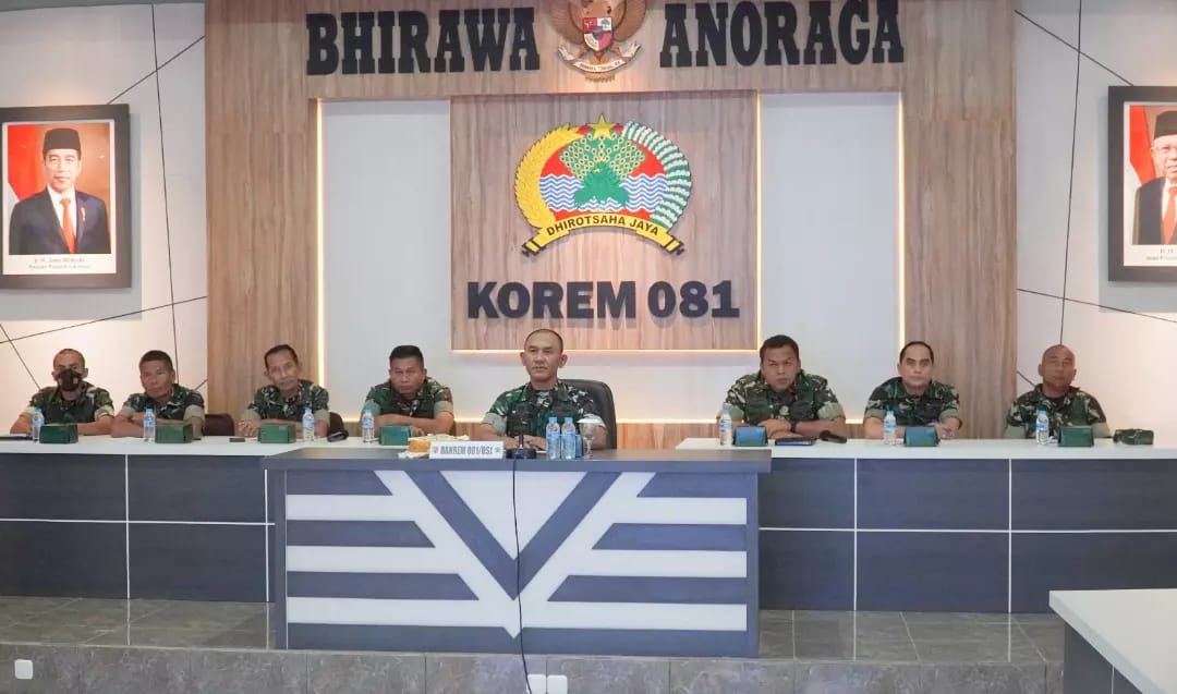 SULUHNEWS.ID, MADIUN – Dari Ruang Command Center Makorem, Danrem 081/DSJ Kolonel Inf H. Sugiyono menerima arahan langsung Panglima TNI Laksamana TNI Yudo Margono, Senin (1/5/2023) secara virtual.