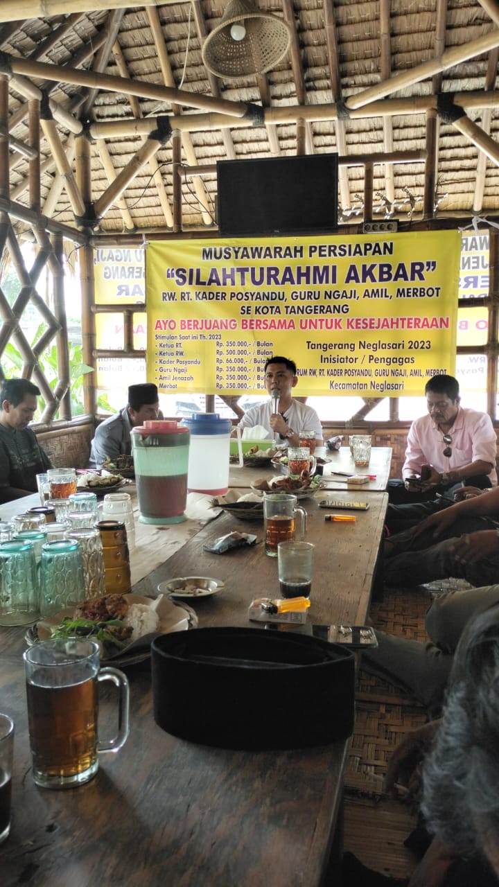 Atas dasar di atas, Ahmad Suryani Ogi melakukan pertemuan para pengurus sekaligus panitia Deklarasi Asosiasi Forum dengan di hadiri para Ketua Forum RT, RT, Kader Posyandu, Amil, Marbot Masjid dan Guru Ngaji se Kecamatan Neglasari, di rumah makan Anto Jaya Jalan Marsekal Suryadarma, RT.001/RW.006, Karang Sari, Kec. Neglasari, Kota Tangerang (Rabu, 15/2/2023).
