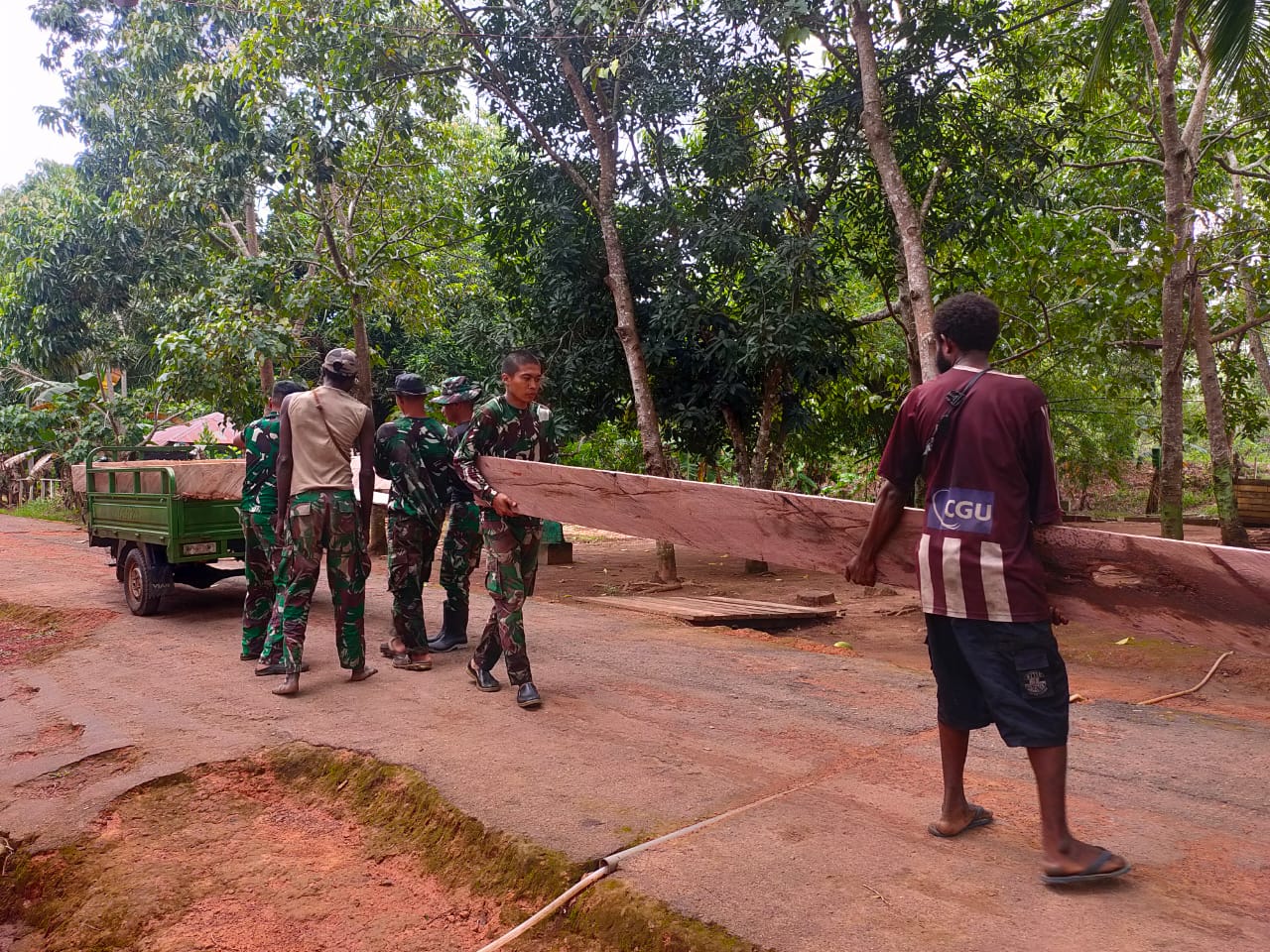 SULUHNEWS.ID, MERAUKE – Satgas Pamtas RI-PNG Yonif 511/DY Pos Yanggandur bersama masyarakat sekitaran pos melaksanakan kegiatan pembenahan pos di Kampung Yanggandur Distrik Sota Kabupaten Merauke. Rabu (19/10/22)