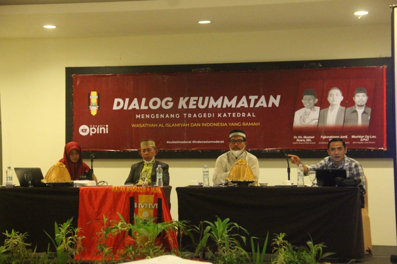 Oleh karena itu, untuk mengingat tragedi ini Cangkir Opini bersama Ikatan Mahasiswa Muhammadiyah Universitas Hasanuddin menggelar kegiatan bertajuk Moderasi Indonesia “mengenang tragedi gereja katedral” dengan membuat dua kegiatan sekaligus, yaitu mempo-mempo kebangsaan dan dialog keummatan (11-12 Desember 2021). Kedua kegiatan tersebut dilakukan untuk mensyiarkan Islam Moderat atau Islam Wasatiyah di tengah-tengah masyarakat Makassar, Sulawesi Selatan.