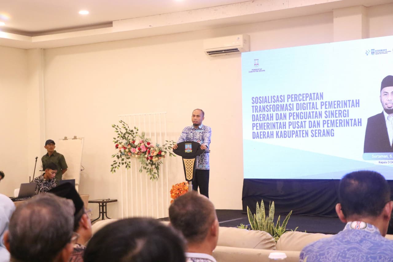 Turut hadir selaku narasumber Direktur Akselerasi Teknologi Pemerintah Digital Daerah Kementerian Komunikasi Digital, Aris Kurniawan, Analis Kebijakan Pertan Deputi Bidang Transformasi Digital Pemerintah Kemen Pan RB, Direktur Keamanan Sibwr dan Sandi pada BSSN, Nanang Danang Jaya, Analis Kebijakan Diskominfo SP Provinsi Banten, Dino Pramono dan Oman Rochman, para Kepala OPD di lingkungan Pemkab Serang dan ratusan peserta dari OPD. (Salsa)
