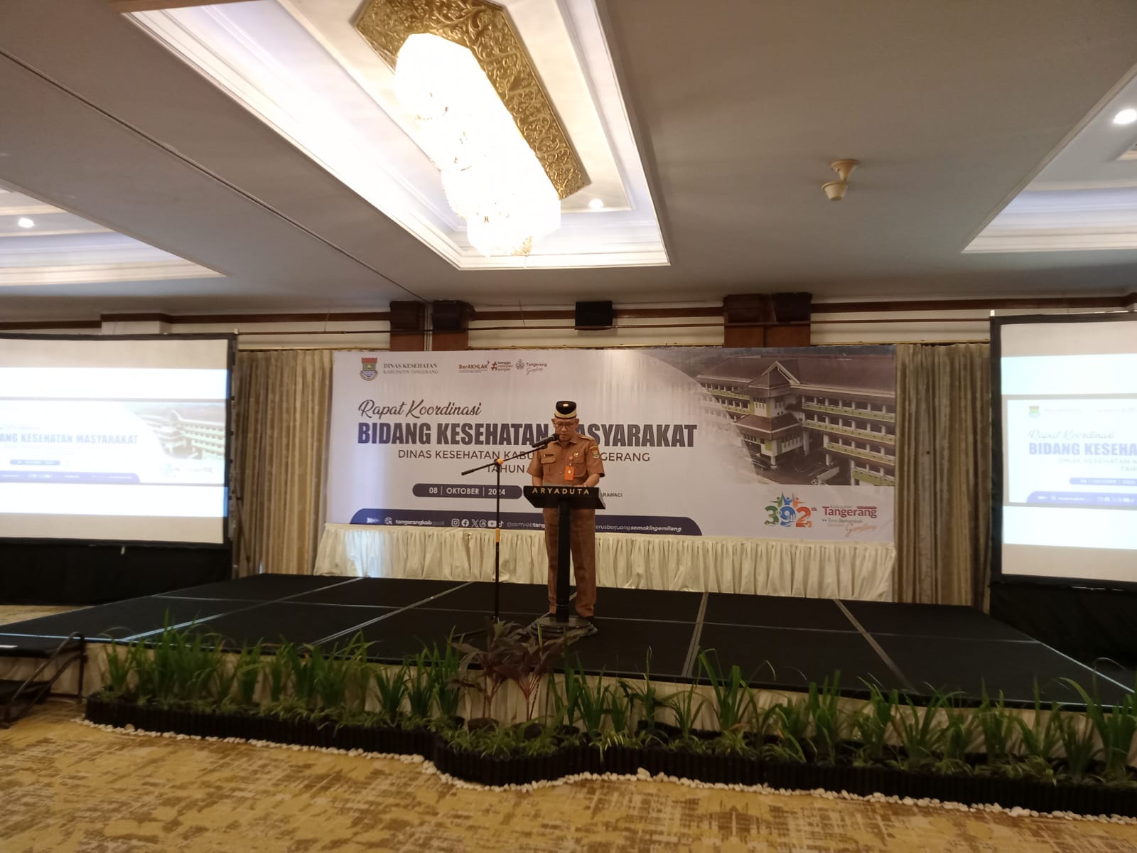 Acara Rapat Kordinasi Bidang Kesehatan masyarakat yang di hadiri, PJ bupati, yang di wakili Drs. Syaifullah asisten daerah (Asda) bidang perekonomian dan pembangunan, Dr.H.Achmad Mukhlis Mrs kepala Dinkes, kepala UPT Puskesmas se-kabupaten Tangerang, para camat, Ketua IDI, Ketua MUI, Dan ketua perhimpunan rumah sakit swasta sekabupaten Tangerang.