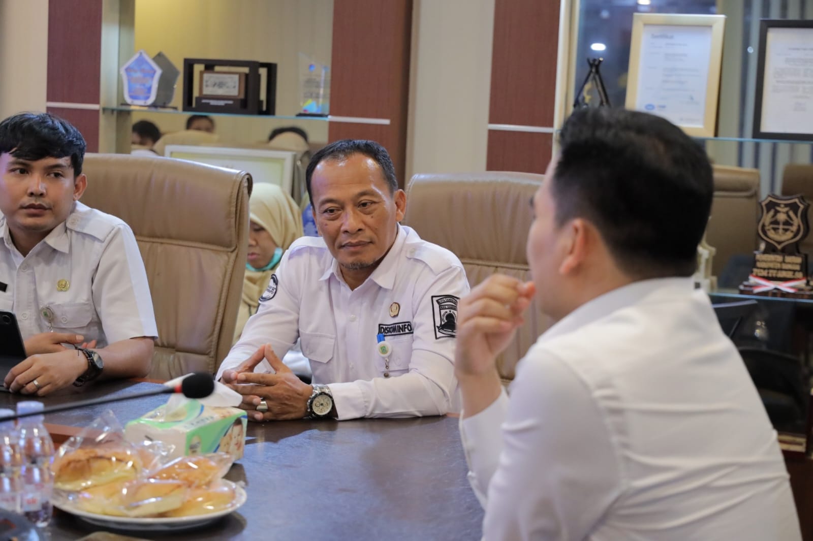 Dinas Komunikasi dan Informatika Kota Tangerang yang diwakili Sekretaris Dinas H.Nurhidaytullah dalam kunjungan kerja diterima oleh Kepala Dinas Kominfo Tb.Asep diruang kerjanya.