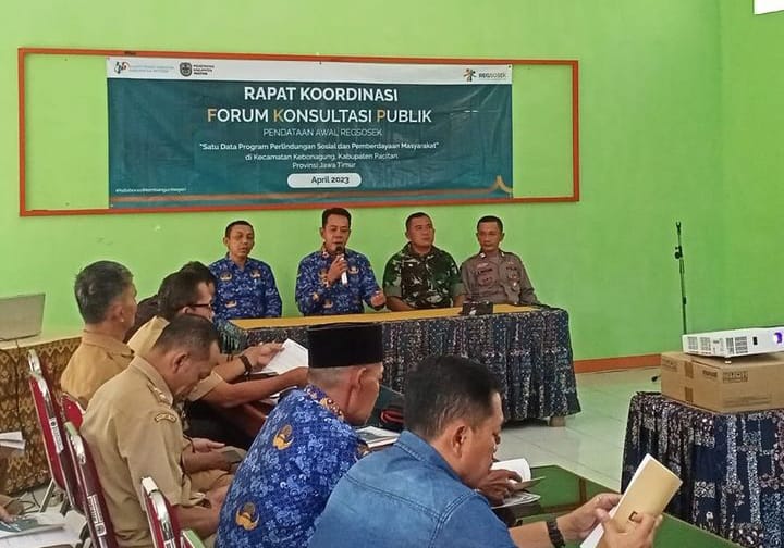 SULUHNEWS.ID, PACITAN – Dalam rangka pendataan awal Registrasi Sosial Ekonomi (Regsosek) Tahun 2023, Kapten Inf B.A. Norodin Komandan Koramil 0801/Pacitan, Kodim 0801/Pacitan, menghadiri rapat koordinasi Forum Konsultasi Publik, bertempat di ruang rapat Kecamatan Kebonagung, Kab. Pacitan, Selasa (18/04/2023).