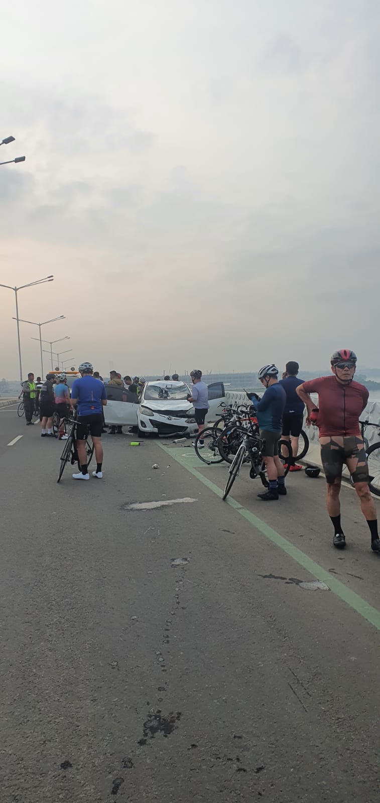SULUHNEWS.ID, TANGERANG – Enam orang pesepeda gowes IC (49), WW (62), AB (35), OS (42), O (45) dan Y mengalami luka-luka setelah tertabrak mobil sedan Mazda 2 yang kehilangan kendali saat di kendarai TJ (25).