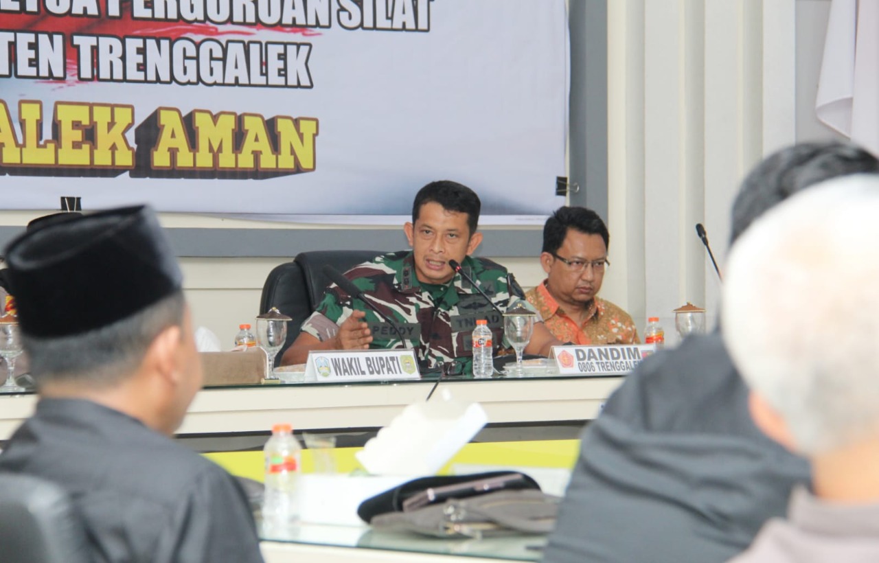 SULUHNEWS.ID, TRENGGALEK – Forkopimda Kabupaten Trenggalek bersama seluruh perguruan pencak silat yang ada di wilayah Kabupaten Trenggalek melaksanakan Rapat Koordinasi (Rakor) dalam rangka menjaga kondusifitas Kabupaten Trenggalek. Kegiatan tersebut dilaksanakan di Rupatama Mapolres Trenggalek, Jl. Brigjend Sutran No.6, Kelurahan Ngantru, Kecamatan Trenggalek, Kabupaten Trenggalek, Kamis (12/01/2023).