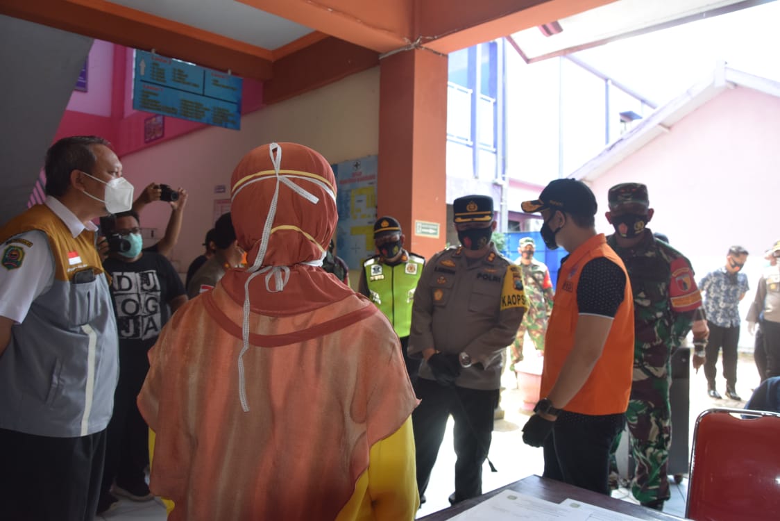 SULUHNEWS.ID, TRENGGALEK – Forkopimda Trenggalek pantau langsung pelaksanaan operasi yustisi protokol kesehatan dan tes antigen bagi warga pendatang baru di sektor wilayah Puskesmas Baruharjo Kecamatan Durenan, Trenggalek, Kamis (24/12/20).