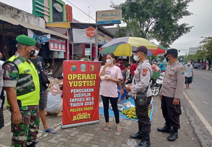Seperti hari ini Anggota Koramil 04/Padas dan Polsek Padas melaksanakan operasi yustisi penegakan protokol kesehatan di pasar tradisional yang berlokasi di wilayah Kecamatan Padas.