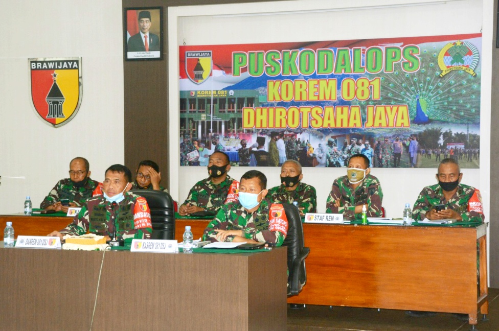 Kegiatan yang dilaksanakan melalui Vicon itu, dipimpin langsung oleh Danrem 081/DSJ, Kolonel Inf Waris Ari Nugroho, S.E., M.Si.