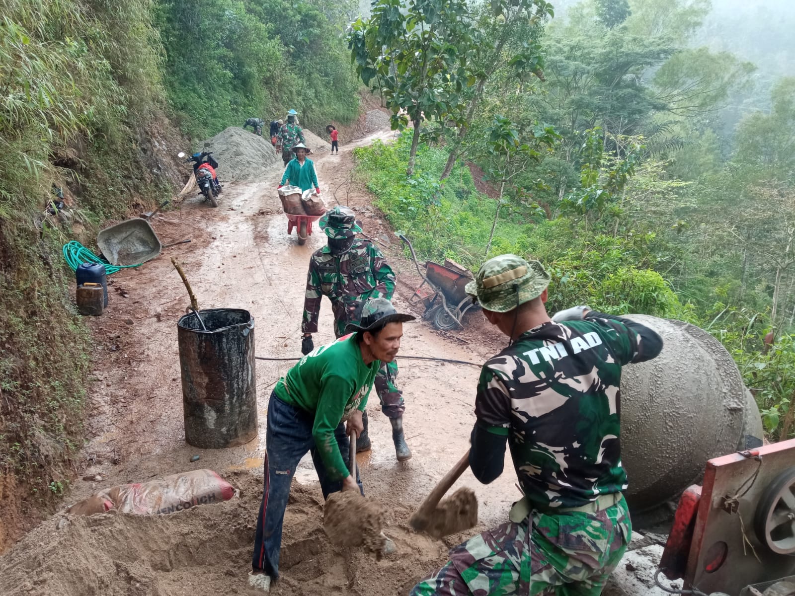 “Memang akhir-akhir ini cuaca sedang tidak bersahabat, kadang panas kadang hujan.Namun itu semua tak menyurutkan semangat kami dalam bekerja untuk mengejar target”,kata Serka Sudarmin saat berada di lokasi.