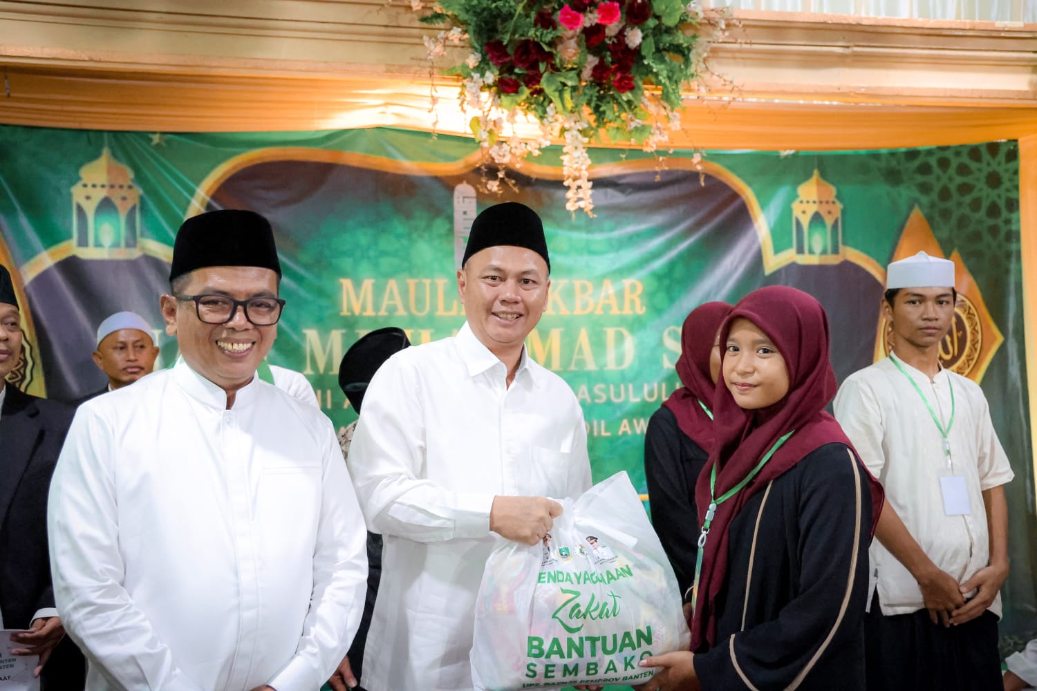 Dalam kesempatan maulid ini, Andra Soni juga menyerahkan bantuan sebesar Rp10 juta. Serta memberikan bantuan dari UPZ BAZNAS berupa santunan bagi tiga penjaga masjid, sepuluh guru ngaji, serta 200 paket sembako untuk masyarakat setempat. Camat Larangan H.Nasrullah mengatakan terima kasih kepada Bapak Andra Soni gubernur Banten yang telah hadir dalam acara Maulid Nabi dan sekaligus memberikan bantuan kepada penjaga mesjid dan para guru ngaji.