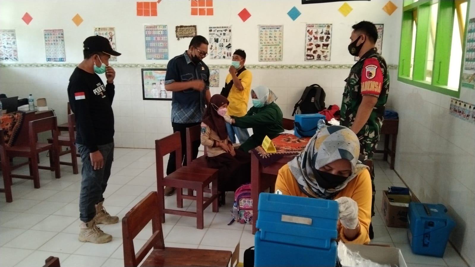 SULUHNEWS.ID, PACITAN.- apaian cakupan vaksinasi covid-19 untuk anak usia 6-11 tahun sudah melampaui angka 60 persen lebih, TNI-Polri di Kabupaten Pacitan terus mensuport pemerintah daerah dalam akselerasi layanan vaksinasi bagi anak ditingkatan SD dan MI.