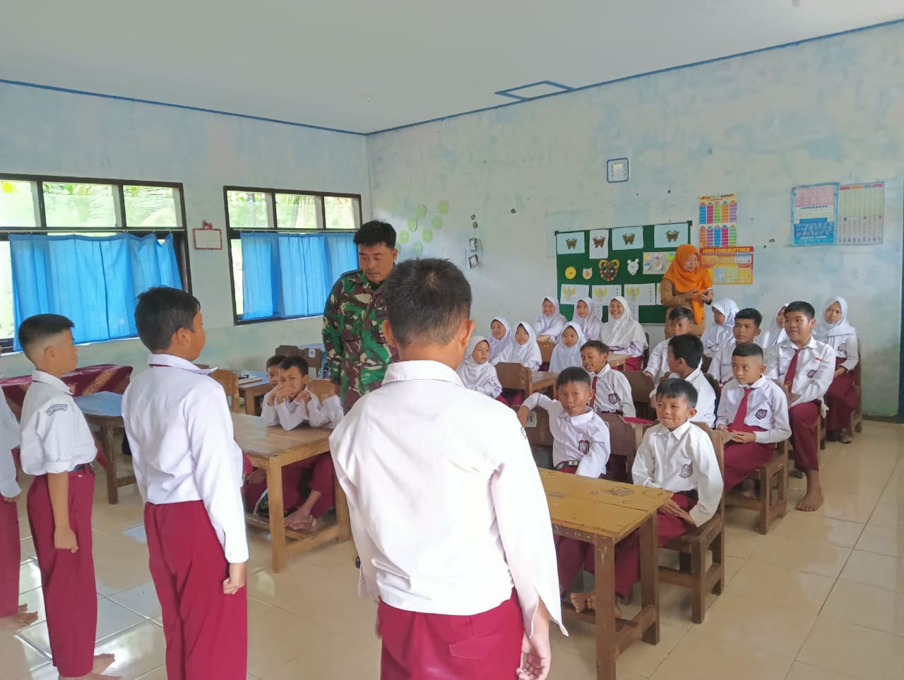 “Pada era globalisasi saat ini, generasi muda terutama pelajar sangat rentan sekali terhadap pengaruh pergaulan yang tidak sehat, bahkan secara perlahan nilai-nilai kebangsaan dan rasa cinta tanah air sudah mulai luntur sehingga harus dibentengi mulai sejak usia dini dengan hal-hal yang positif”, kata Babinsa kepada para siswa.