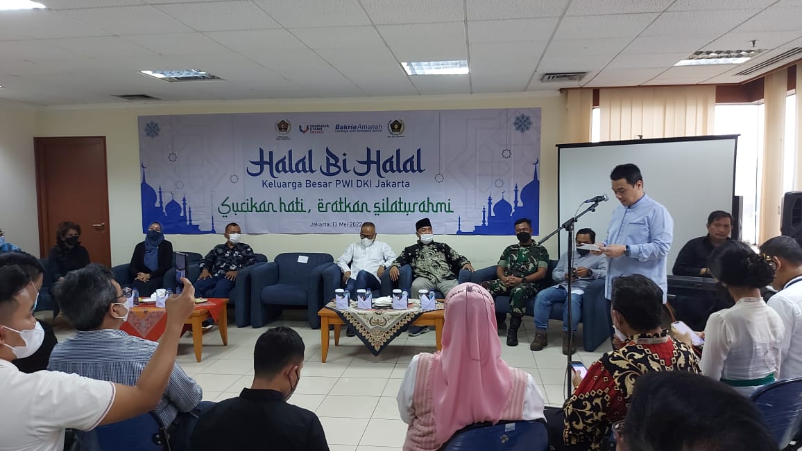 SULUHNEWS.ID, JAKARTA – Persatuan Wartawan Indonesia (PWI) DKI Jakarta menggelar halalbihalal Idul Fitri 1434 H dengan segenap pengurus dan anggotanya di kantor PWI DKI Jakarta, lantai 9 Gedung Prasada Sasana Karya Jakarta, Jumat (13/5/2022).