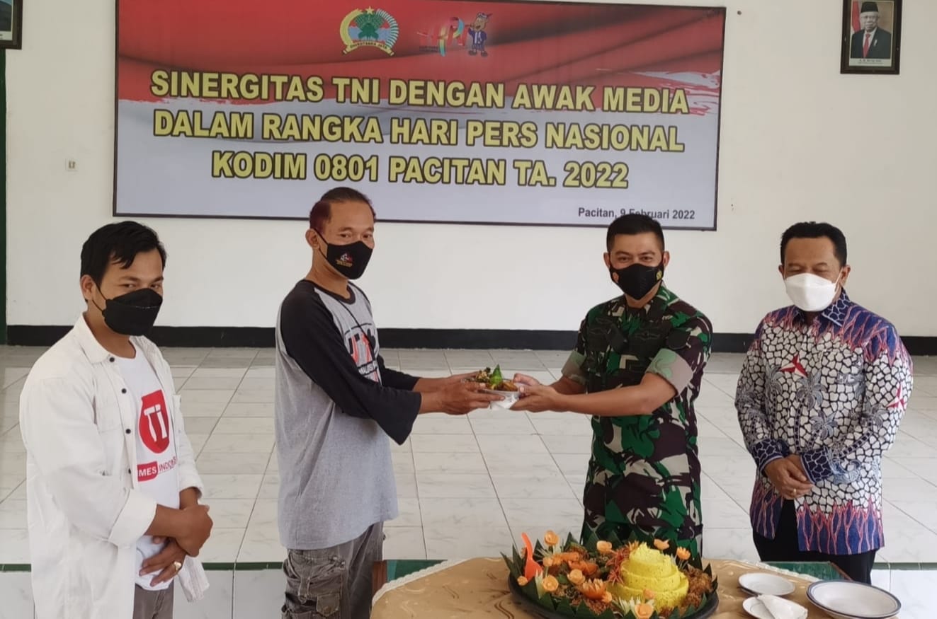SULUHNEWS.ID, PACITAN – Dalam rangka memperingati Hari Pers Nasional (HPN) yang jatuh pada tanggal 09 Februari 2022 kali ini Kodim 0801/Pacitan menggelar acara sederhana potong tumpeng bersama wartawan di Aula Kopral Sigit Kodim 0801/Pacitan Jln.Letjend Suprapto No 42 Pacitan, Rabu (09/02/2022).