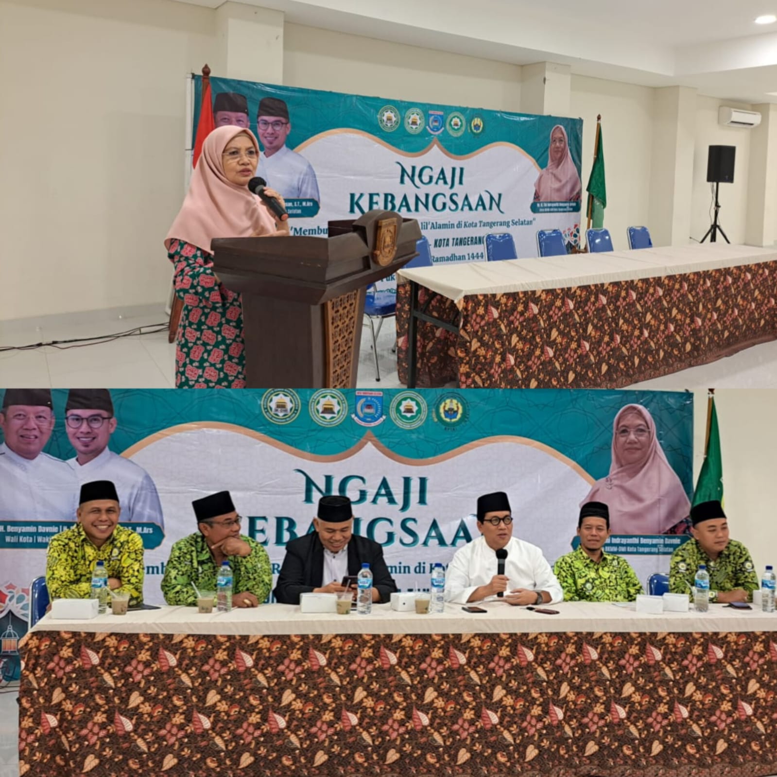 SULUHNEWS.ID, TANGERANG SELATAN – Ketua Badan Koordinasi Majlis Taklim Masjid (BKMM) Kota Tangerang Selatan Hj. Tini Indrayanthi (yang juga istri Walikota Tangerang Selatan) menghadiri acara Ngaji Kebangsaan dengan tema ‘membumikan rahmatan lil al-amin di Kota Tangerang Selatan’ dengan narasumber Sekretaris Jenderal Dewan Masjid Indonesia (Sekjen DMI) Imam Addaruqutni.